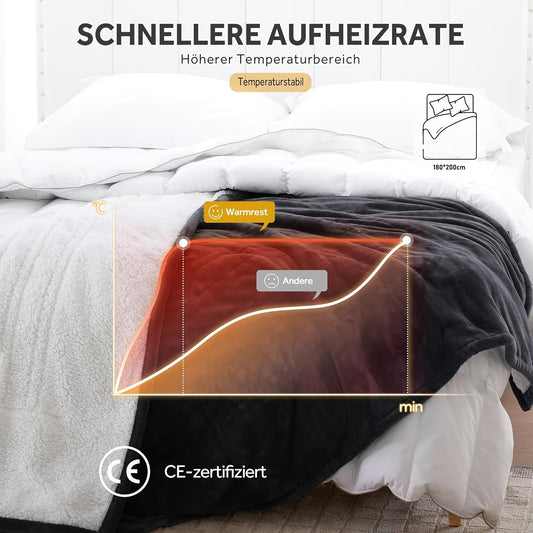 Elektrische Deken voor Bed, Witte Verwarmde Decke, Wasbaar, 7 Warmte-instellingen