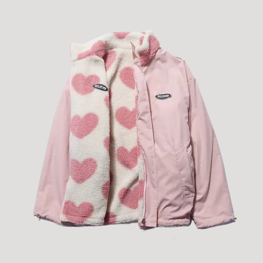 Vrouwen Omkeerbare Fleece Jas | Hartprint Ontwerp en Gezellige Comfort