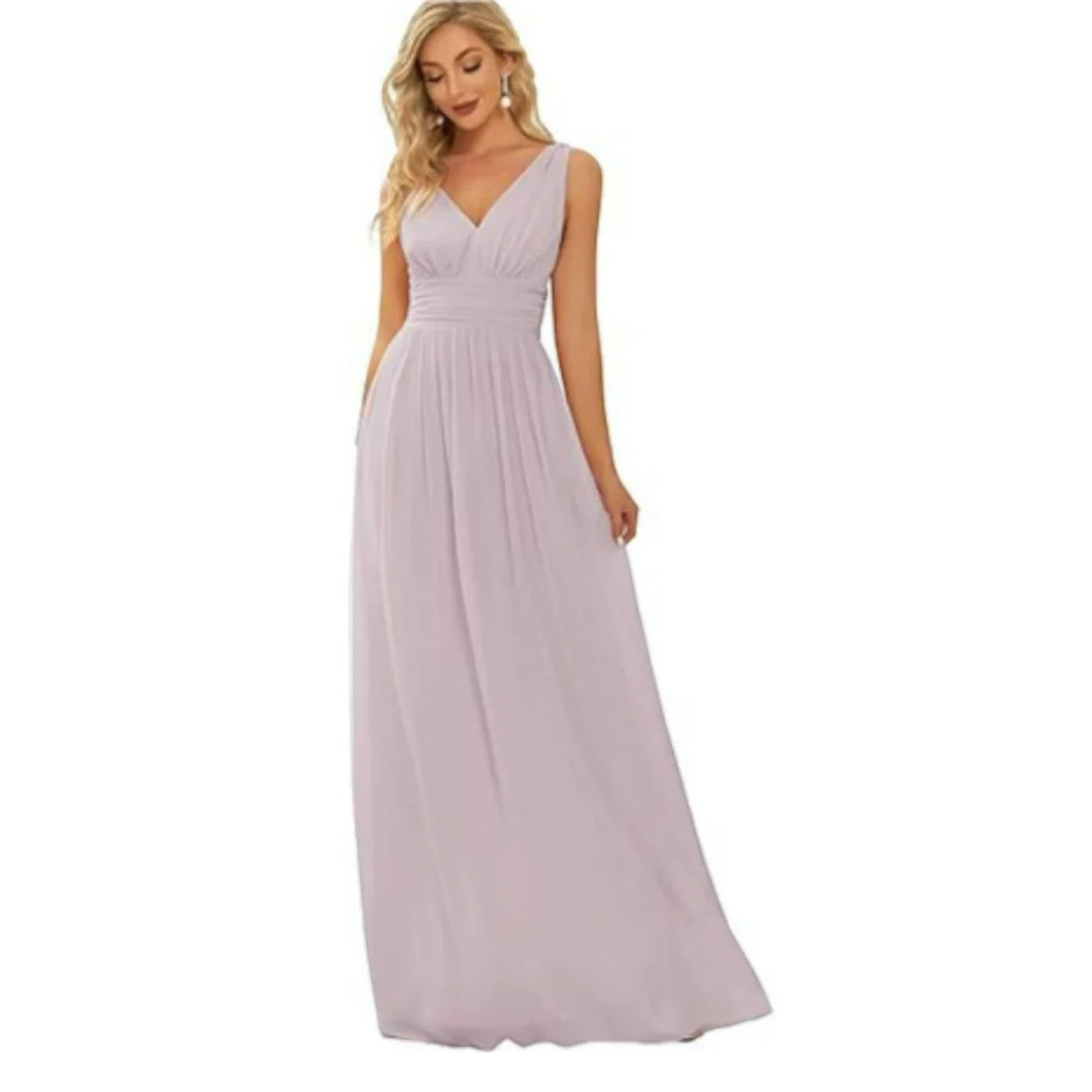 De Elegante Jurk Met V-hals | Maxi is het toonbeeld van vrouwelijkheid en verfijning. Met een vloeiende maxi-lengte en een diepe V-hals zorgt deze jurk voor een prachtig silhouet en een elegante uitstraling. Het mouwloze ontwerp maakt de jurk ideaal voor warme dagen én feestelijke gelegenheden. Of je nu naar een diner, bruiloft of zomerse viering gaat – met deze jurk straal je pure klasse uit.