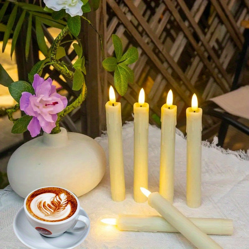 Deze set van zes flameless kaarsen biedt sfeervolle verlichting zonder vuur of rook. Met een realistisch flikkerend vlameffect, afstandsbediening en timerfunctie zijn ze uitstekend geschikt voor bruiloften, kerstdecoratie of dagelijks gebruik in huis. De gepolijste plastic afwerking en uplight-verlichting zorgen voor een warme ambiance op tafel, vensterbank of schouw.