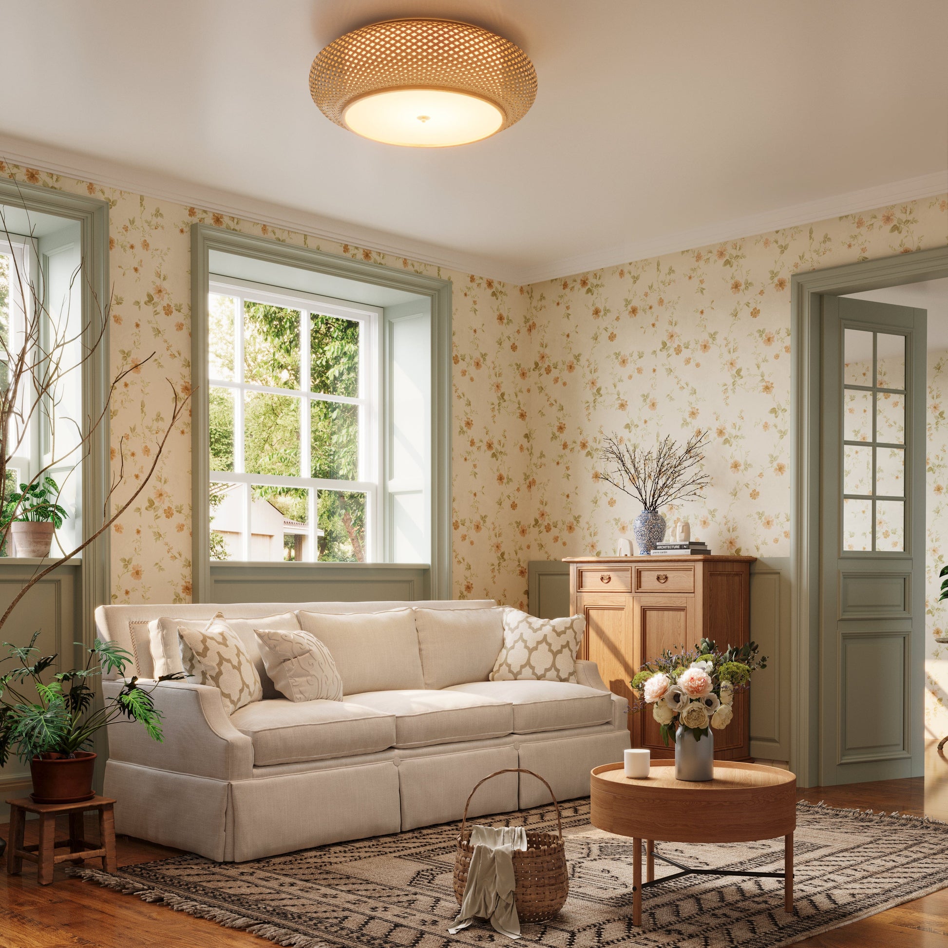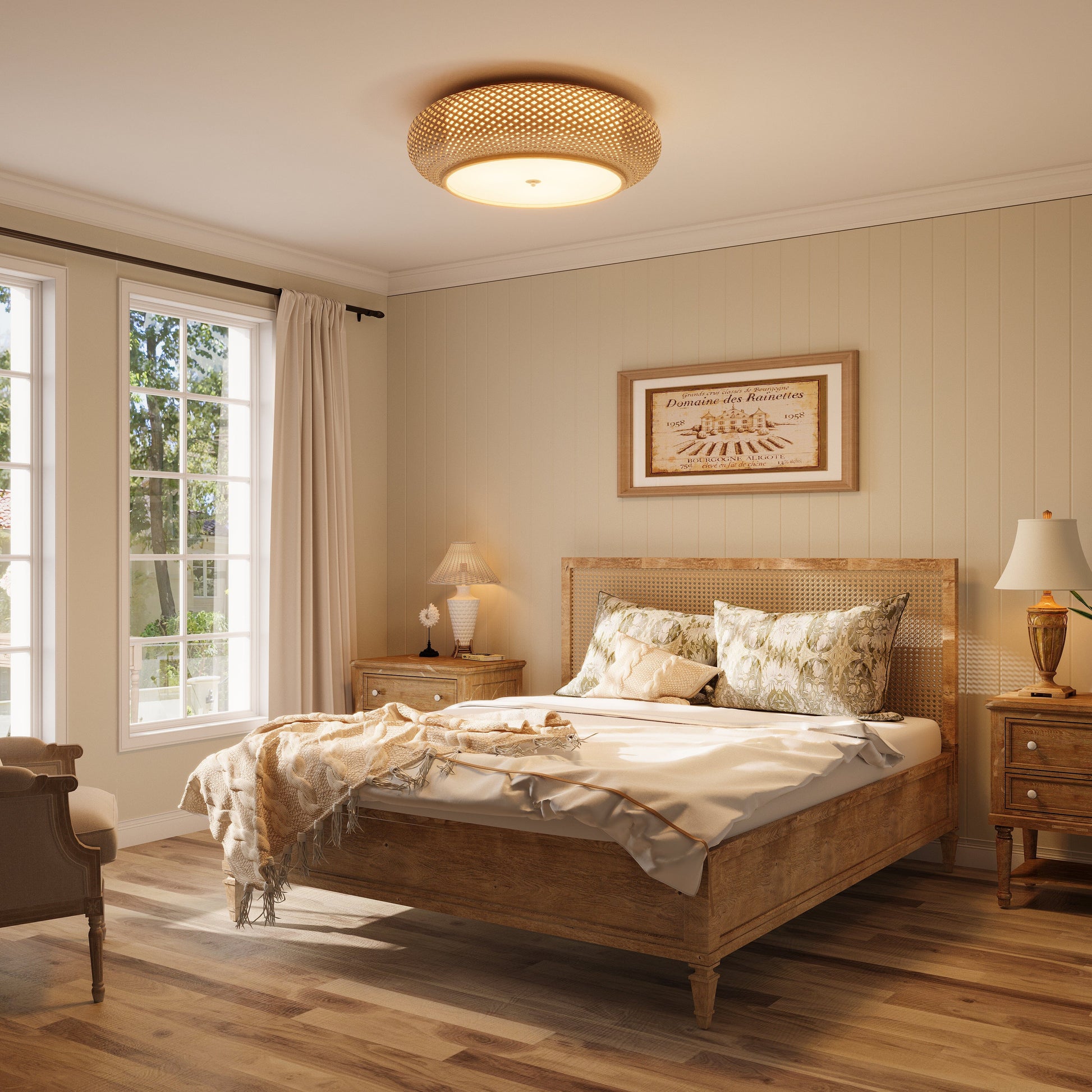 Gemaakt van handgeweven bamboe en zacht linnen, biedt dit milieuvriendelijke armatuur een organische uitstraling die elke decoratie versterkt.
