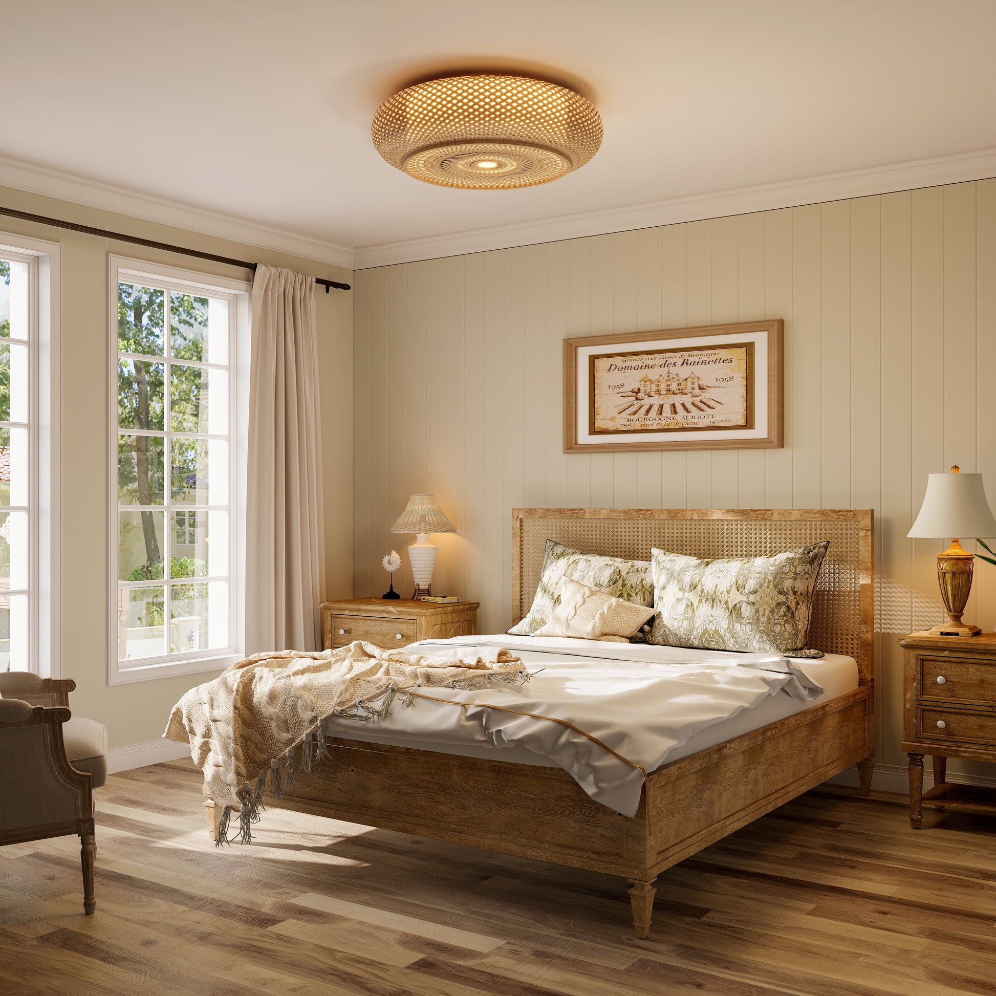 Transformeer uw huis met deze prachtige handgeweven bamboe rieten plafondlamp. Met zijn slanke platte vorm en natuurlijke bamboe afwerking, is het beschikbaar in zowel hanglamp- als plafondmontage-opties, waardoor het een veelzijdige aanvulling is voor elk interieur.
