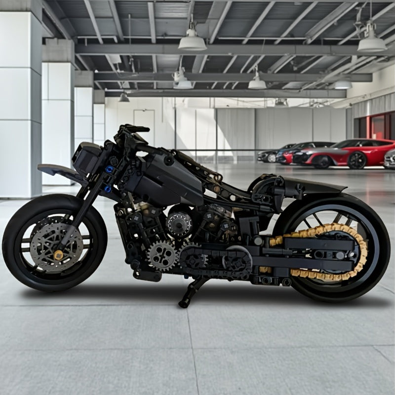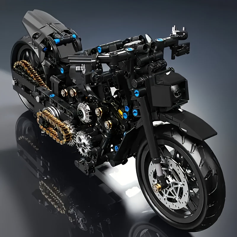 Deze gedetailleerde bouwstenen set vormt een retro motorfiets met realistische mechanische elementen zoals kettingaandrijving, tandwielen en een gestroomlijnd frame. Met meer dan 1000 onderdelen biedt deze assemblagekit een uitdagend bouwproject en een indrukwekkend eindresultaat – perfect als huisdecoratie of cadeau voor motorliefhebbers.