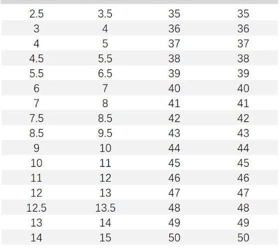 | Schoenmaat | Voetlengte (mm) |